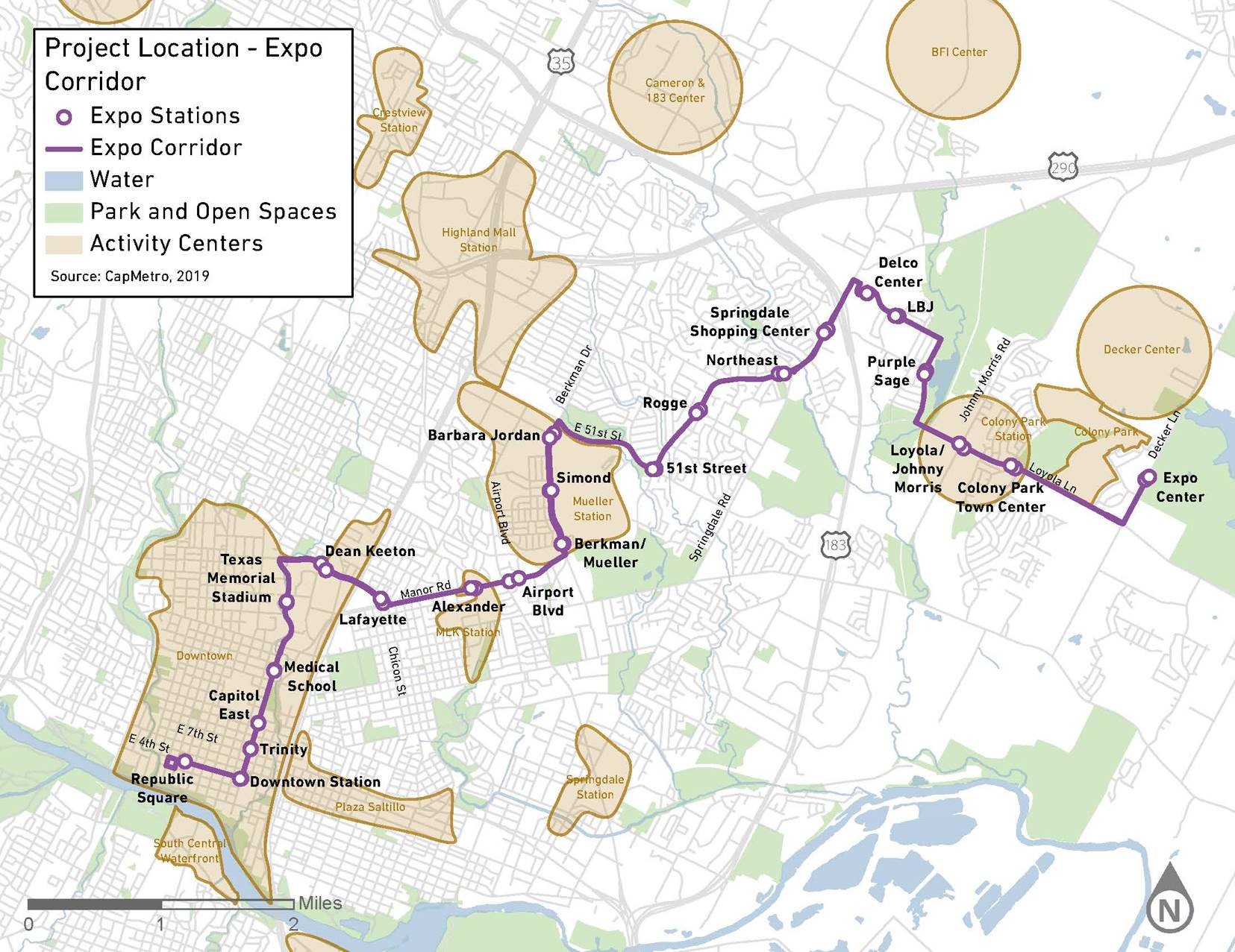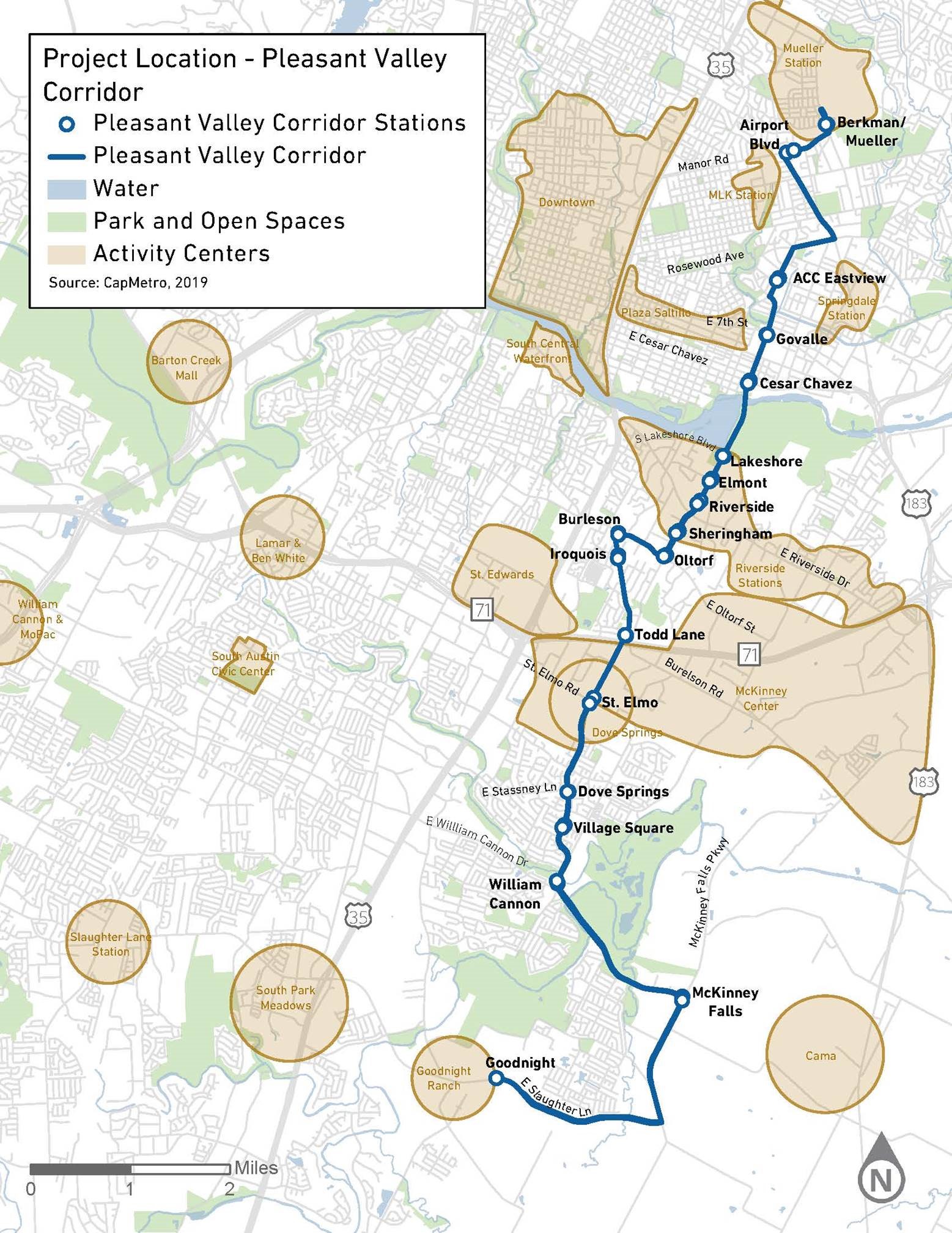 The Expo Center BRT project consists of an approximately 12-mile BRT route along some of the highest ridership corridors in the CapMetro system. A total of 23 station pairs will be implemented throughout the corridor and seamlessly connect downtown Austin with northeast Austin. The Pleasant Valley BRT Project consists of an approximately 14-mile BRT route also along one of the highest ridership corridors and acts as a north-south spine east of I-35, extending transit coverage to the growing area of southeast Austin. A total of 19 station pairs will be implemented throughout the corridor, effectively improving the mobility of several communities in east/southeast Austin between Mueller and McKinney Falls.