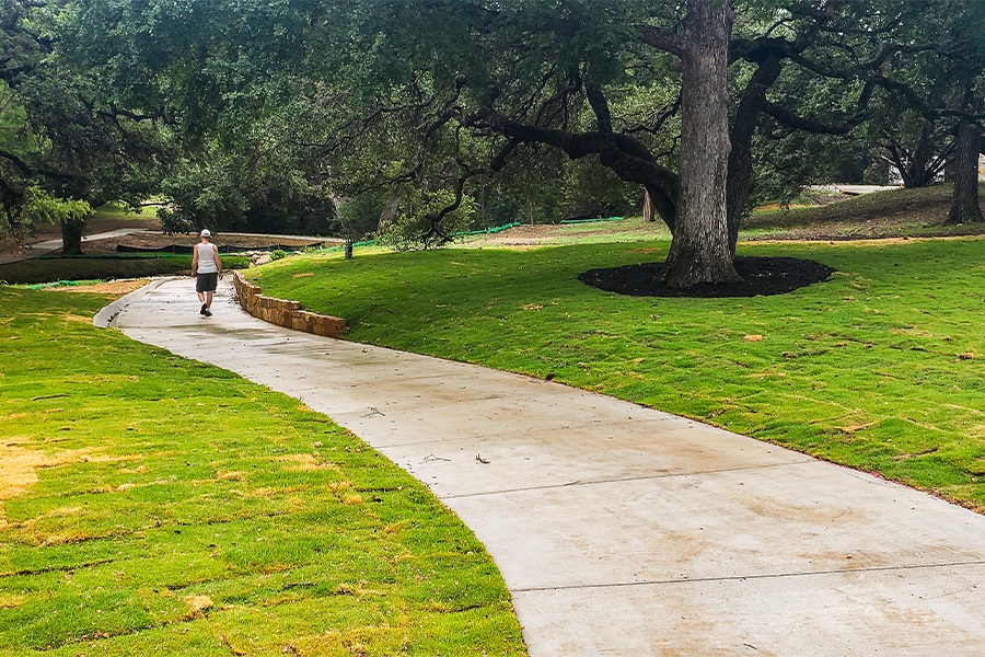 Huitt-Zollars provided full preliminary engineering and final design of the new 8’ wide pedestrian bridge and new 8’ concrete sidewalk trail. Services included: drainage study, design, and analysis; floodplain modeling and analysis to ensure no rise in the floodplain; drainage inlet and storm sewer to capture and convey existing offsite drainage; landscape design; paving and grading improvements; bid phase and construction phase services.