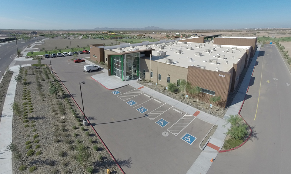 The Huitt-Zollars team provided planning, survey, and final engineering services for 4.5 miles of arterial infrastructure roadway and 1 mile of drainage channel infrastructure. In the second phase, Huitt-Zollars designed another 2.5 miles of infrastructure roadway and an additional 1,000 lots. Huitt-Zollars was responsible for all civil engineering design including paving, grading and drainage, water, and sewer and storm drain design for the infrastructure roadways and parcels associated with the Eastmark Master Planned Community. Huitt-Zollars was also involved in the design of a 1.7-acre Community Center, a major focal point of the community, and a 4-acre BASIS Mesa School site. Our team provided field survey, preliminary design, final engineering, and construction administration services. Extensive coordination was required with the City of Mesa, the Flood Control District of Maricopa County, and all the utility companies to complete the project.