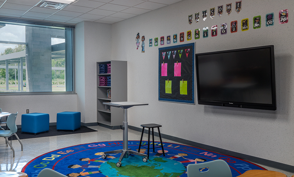 Johnson Elementary School holds 1,000 students from Pre-K through sixth grade. The school is a one-story complex with 80,000 square feet of classrooms, science labs, cafeteria, kitchen, library, music and art rooms, nurses’ stations, administrative offices, practice gymnasium, playground, and additional recreation fields.