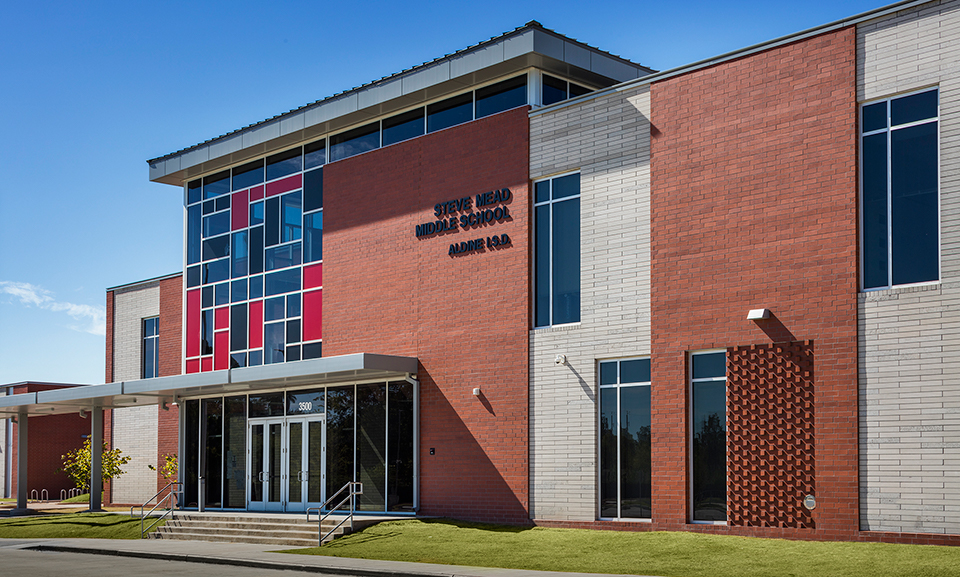 Steve Mead Middle School holds 1,200 students from sixth to eighth grade. This two-story middle school is over 200,000 square feet and includes classrooms, science labs, art labs, cafeteria and kitchen, auditorium, band room, nurse’s station, administrative offices, practice and competition gymnasiums, practice baseball and football fields, tennis courts, and a practice track.
