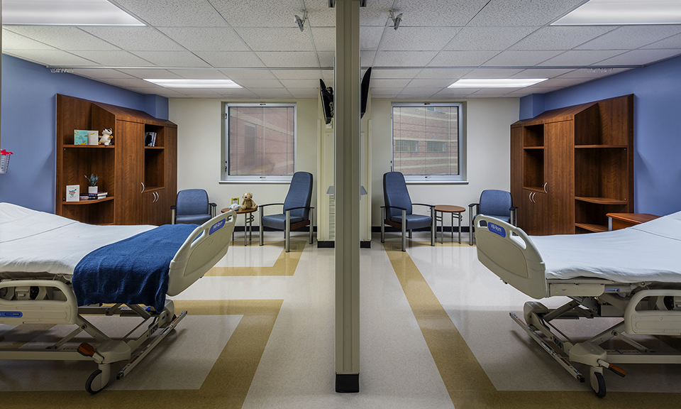 The patient unit renovations for Ben Taub and LBJ Hospitals were part of an on-going, multi-year, task-order project consisting of the conversion of four-bed patient units to semi-private rooms. Each project renovates one or two patient units at a time, at approximately 10,000 square-feet per unit, in order to minimize the number of beds offline and to reduce interruption to patient care. Ongoing coordination and collaboration with the hospitals’ infection control team and construction manager ensured the ICRA plan was continuously followed and maintained. In addition to converting four-bed rooms to two-bed semi-private rooms, work on each unit included reconfiguring nurse stations and support functions to optimize functionality and staff efficiency, upgrading handicapped accessible rooms to current standards, and upgrading finishes throughout the unit. Special effort was made to minimize construction noise and activity affecting adjacent patient care areas. The project size was 178,500 total square-feet.