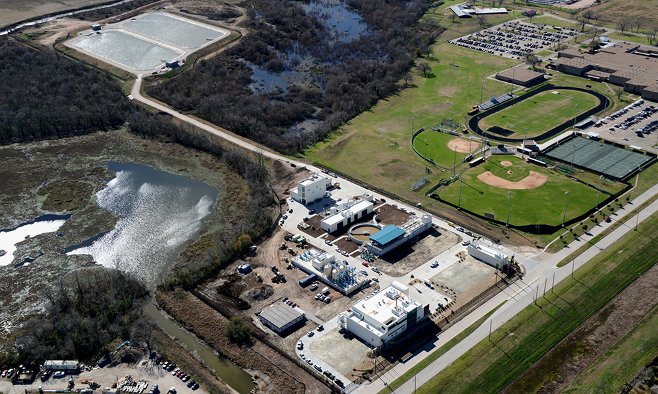 Huitt-Zollars, as a consultant, provided civil engineering, architectural design, interior design, and landscape architecture for the $69 million plant, one of the City of Sugar Land’s largest Capital Improvement Projects ever. Huitt-Zollars provided design services for the entire 40-plus-acre site, pump station buildings, maintenance building, sludge dewatering building, chemical building, main electrical distribution building, and membrane/administration building. Landscaping consists of drought resistant plantings, regional perennial flowering plants, boulders, and a dry creek that will serve as a rainwater diversion feature to the surrounding storm sewer system in lieu of gutters and downspouts on buildings.