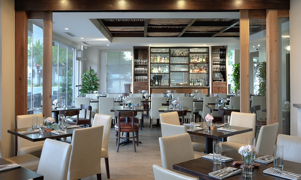 The 4,451 square-foot restaurant interior displays a unique prototype by fusing modern and rustic elements to brand the “ranch to table” dining concept. The interior design supports various restaurant functions: a bar/lounge area, public and private dining, special event rooms and an open chef’s kitchen. The interior palette displays natural materials of wood, hemp, and grass. Life-size photos of Akaushi cattle and timber ceiling elements (created from ranch remnants) contribute to the ranch-chic ambiance.