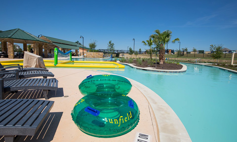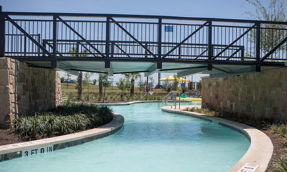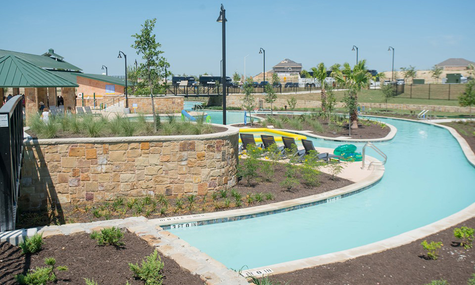 Sunfield is a 2,428-acre master planned community located in Buda, Texas, just south of Austin. The community currently features 15 parks, more than 12 miles of trail systems, and 2 amenity centers. Huitt-Zollars has provided a number of services for this community, including planning, trail design, monumentation, signage and landscape architectural design for main entrances, streetscape corridors, amenity centers, park design and covered mail stations — including hardscape, landscape, and irrigation design. Huitt-Zollars also prepared the conceptual designs and construction documentation packages for the Sunbright Amenity Center and the Lazy River Amenity Center, which includes multiple swimming pools, a lazy river, a splash pad, picnic and shade pavilions, restroom facilities, and parking. The lazy river amenity center also includes site and landscape lighting, landscape enhancements, and a water efficient irrigation system. Full structural, electrical, and MEP design and detailing plans were provided, as well as full civil design for the lazy river and restroom facility. To learn more about the Sunfield community and to see additional images, please visit https://www.sunfieldtexas.com/.