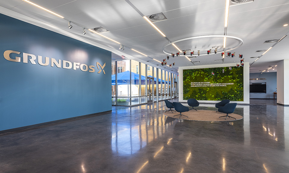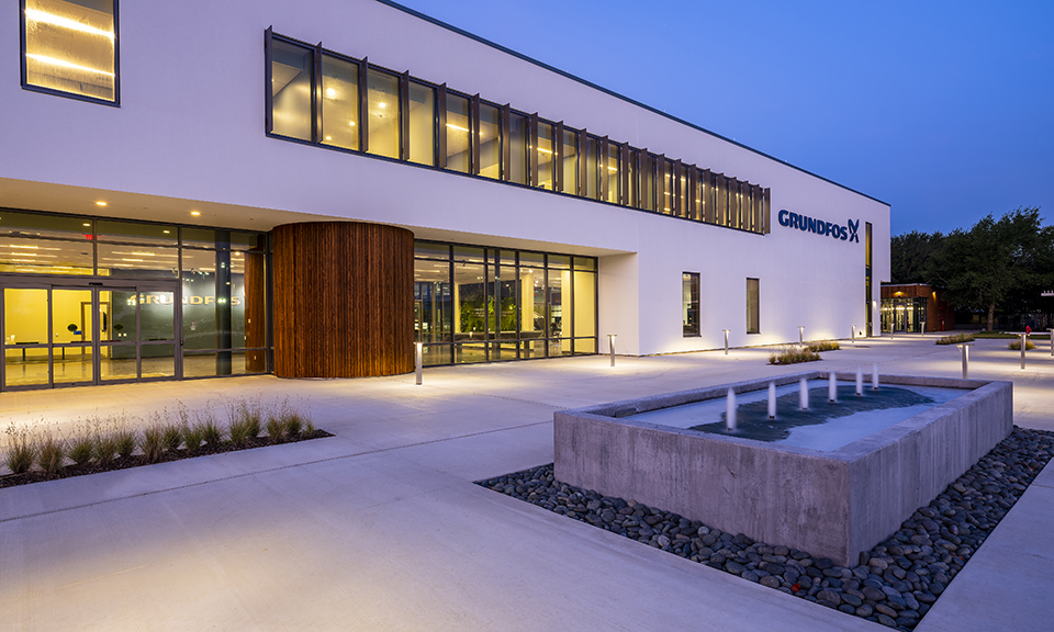 Ramboll A/S in Denmark was selected by Grundfos, a Denmark-based global water technology manufacturer, as Program Manager for a new 45,000-square-foot Americas Regional Center in Brookshire, Texas. The new facility would house Grundfos sales, operations, engineering, HR, finance, and other support functions. Grundfos’ in-house architect in Denmark designed the new building; therefore, Ramboll needed to find a firm capable of interpreting and redrawing the plans, originally done to European standards, to US standards for procurement by a separate Design/Build team.