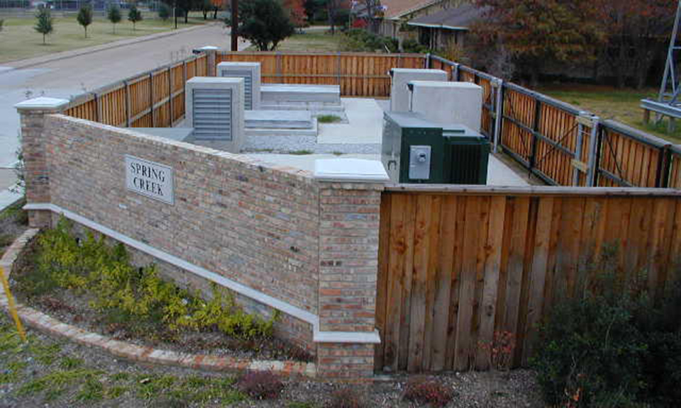 Huitt-Zollars provided construction plans, specifications and related right-of-way documents for an 8,100-linear-feet section of 48-inch water main; the project was located along a four-lane undivided collector street. Significant project considerations and extensive coordination involved Dallas Water Utilities, TXU, neighborhood representatives, an underground booster pump station, and city council staff. The project connected to the existing pump station and primary transmission water lines in the area. The underground pump station houses two 11,200-GPM centrifugal pumps powered by 350-HP motors; the above ground ventilation and access shafts are surrounded by a fenced and landscaped site beneath 138-KV electric power lines.