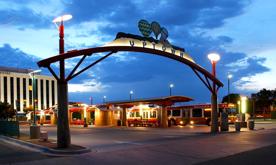 Huitt-Zollars provided design and construction phase services for the Uptown Transfer Center, located in a large retail and commercial area of Albuquerque known as Uptown. The project serves as a route and neighborhood collector. The project not only provides the opportunity for mixed-use transit-oriented development, but also has begun to form a pedestrian-friendly circulation system, connecting the existing retail and office developments in the area. Huitt-Zollars provided all major design services required for the project, including architecture, civil and traffic engineering, landscape architecture, cost estimating, and construction administration services. The facility was designed to accommodate both 40-foot transit buses and 60-foot articulated buses, with designated berths for both types.
