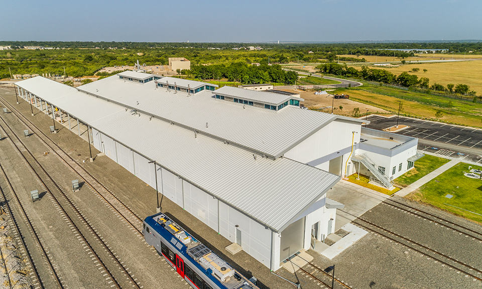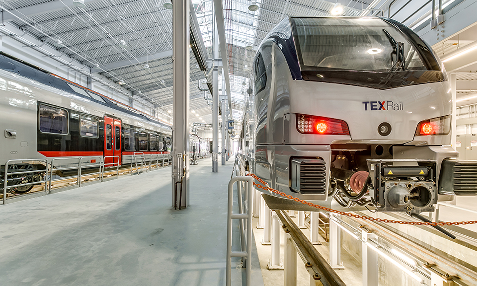 The TEXRail project is a 27.2-mile commuter rail system that runs between downtown Fort Worth and the Dallas/Fort Worth International Airport and is operated by the Fort Worth Transportation Authority. Huitt-Zollars, as the Project Manager and Engineer-of-Record, provided design and construction support services for the new Mahaffey Maintenance Facility where eight Stadler FLIRT Diesel Multiple Unit (DMU) that operate on this line are stored and maintained. The 22-acre site includes a 48,000-square-foot maintenance building, fuel storage tanks, yard track for DMU storage, and an employee parking area. The facility has dedicated bays for train repair and inspection, a covered fueling area, and a drive through vehicle wash bay, as well as offices, a breakroom, restrooms/locker-rooms, a parts warehouse, and dispatch operations.
