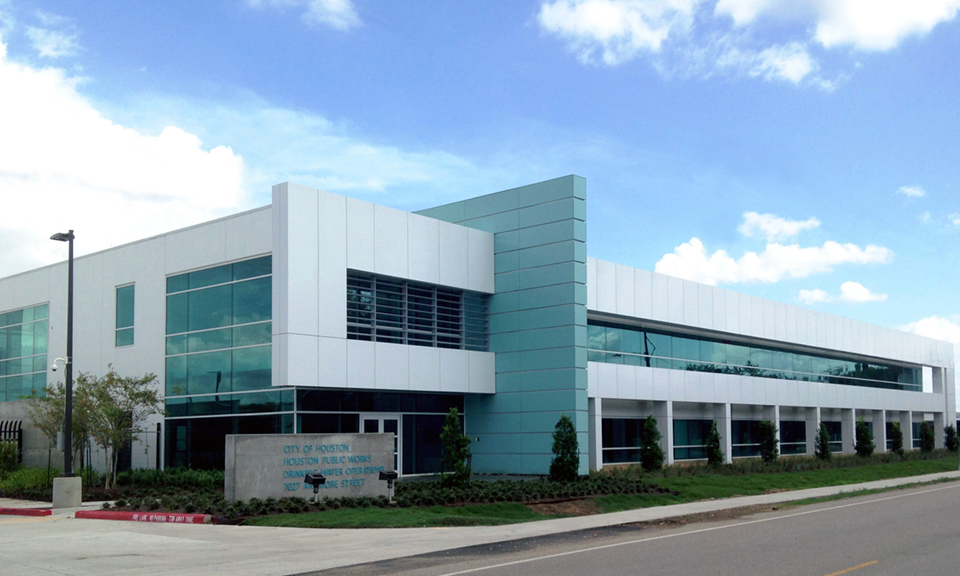 The City of Houston contracted with Huitt-Zollars, Inc. to conduct assessments of their facilities. One major component of these assessments was the City’s existing Drinking Water Operations facility at 7000 Ardmore. The original task, following the assessments, was to develop a master plan for the administrative offices and scattered maintenance shops on the existing site. Huitt-Zollars determined that the existing buildings would have to undergo extensive renovations in order to meet the new building codes, user needs, and future growth of the facility. In the end, the best solution was to build a new, $16-million state-of-the-art administrative building and maintenance facility across the street from the existing facility that would serve the needs of the growing city now and over the next fifty years. The 66,000-square-foot two-story building, sitting on a 4.25-acre site, has a service center consisting of maintenance and machine bays, parts storage, a carpenter’s shop, and instrumentation and meter shops, and an administrative area with offices and workstations, conference rooms, and a training room. A designated work crew area has a break room, showers, locker rooms, and restrooms. This project was completed in 2019.