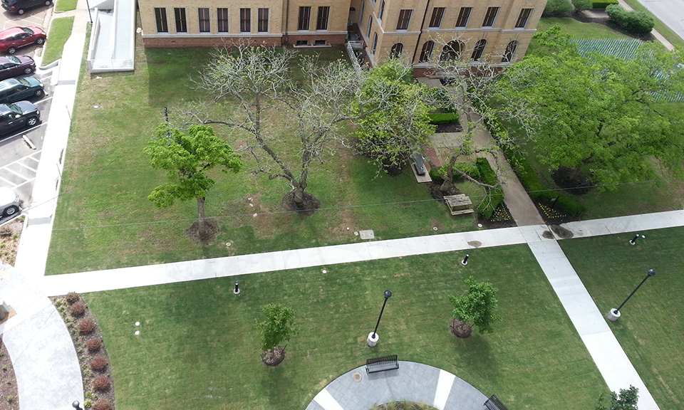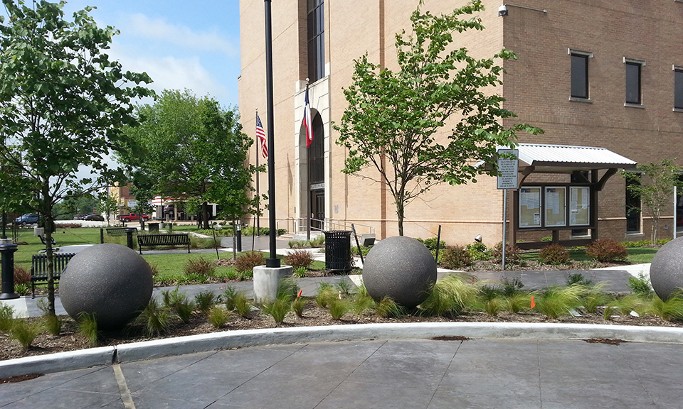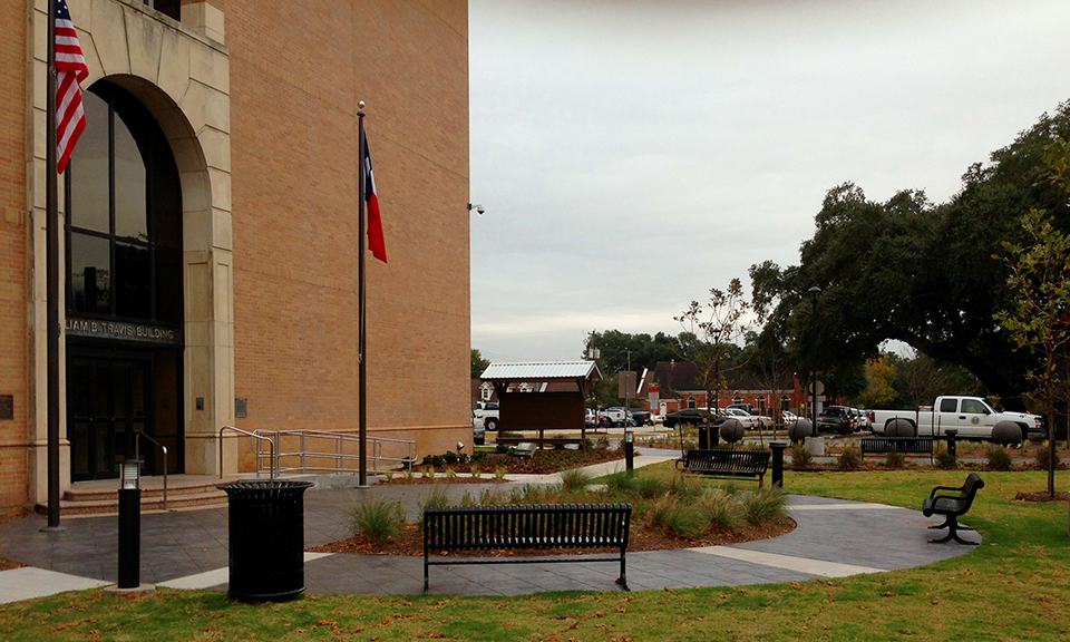 Huitt-Zollars designed and constructed a pedestrian plaza to enhance the visual and historic appeal of the area between the Historic Fort Bend County Courthouse and the County’s William B. Travis Building. The project embraced sustainable design by incorporating a 10,000-gallon rainwater harvesting system to collect, store, and pump rainwater from the roofs of both buildings for irrigation usage. The plaza is an attractive and inviting connection that promotes spontaneous pedestrian movement, scheduled community activity in a park-like setting, and enhances the existing landscape around the monuments on the courthouse grounds. The project creates green space from gray space and the design emphasis reflects a welcoming, refreshing, and peaceful area.