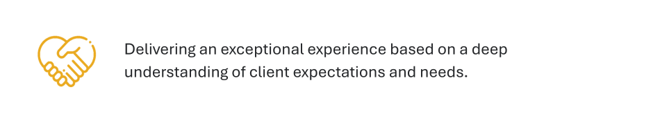 Delivering an exceptional experience based on a deep understanding of client expectations and needs.