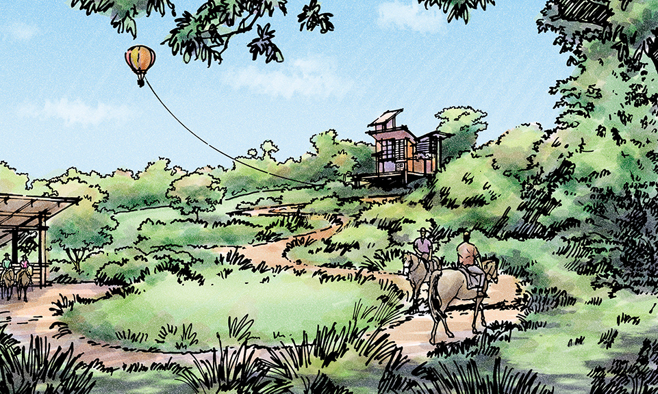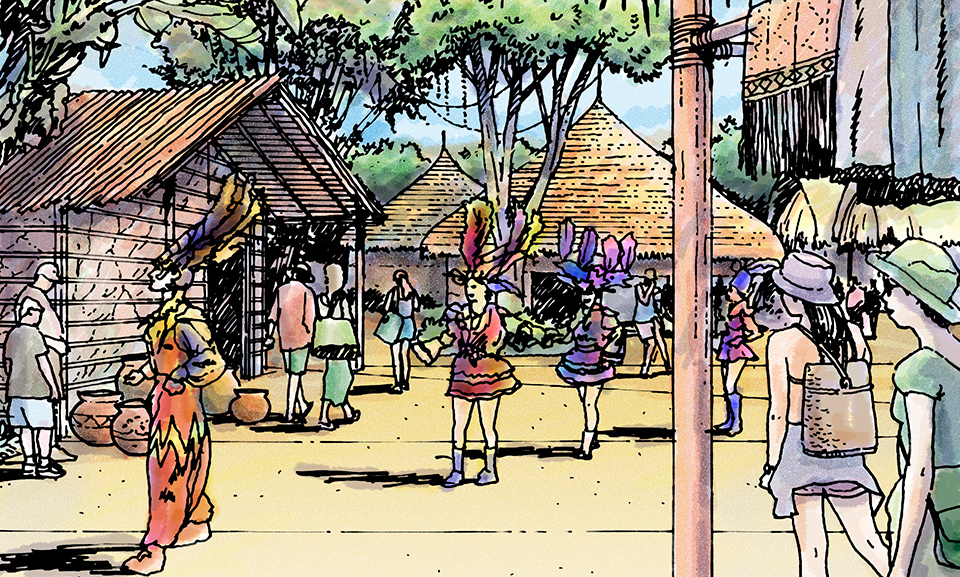 The heart of Parque Amazônia includes a Zoological Park & Aquarium, Jungle Trek Safari, and Bromeliad Gardens, as well as the Timborana Lodge and Anatuba Village. Anatuba Village functions as the main arrival collection point and main gathering point for the whole project, while providing shopping, dining, and cultural entertainment experience opportunities to guests.