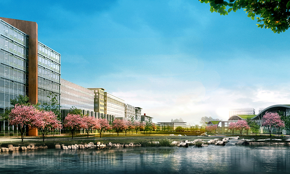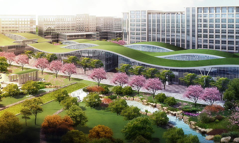 This 16-hectare master plan is the Central Commercial District to the Airport Free Trade Zone. It features 197,000-square-miles of international Class 5A offices, 21,500-square-miles of above-grade retail and restaurant with a wavy green roof, 36,000-square-miles of above-grade retail and a restaurant with a green roof park, 88,000-square-miles of commercial serviced apartments, and a 76,000-square-miles park and connection to the lakefront.