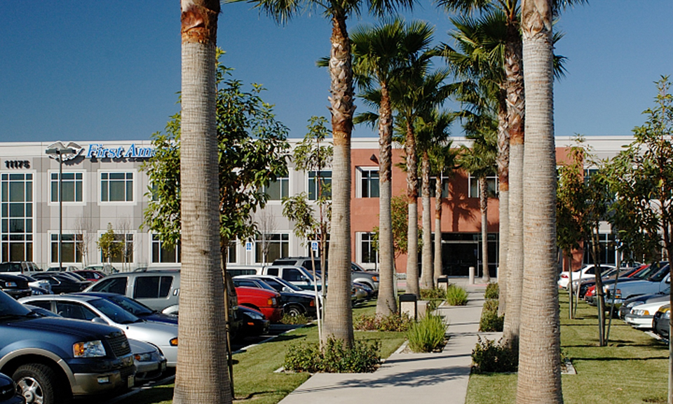 Huitt-Zollars provided site design including grading and drainage, a sewer and water plan, and public street improvement plan revisions. Azusa Court is a two-story office building and parking lot fronting the Empire Lakes Golf Course in the City of Rancho Cucamonga.