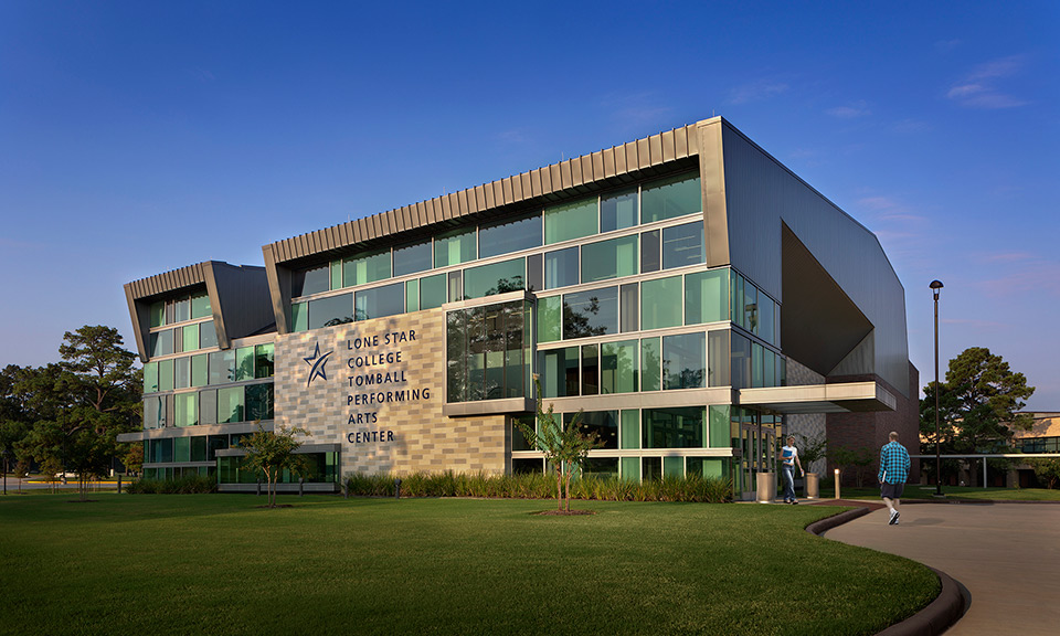 Project management and full architectural and design services were provided for the 30,000-SF, 425-seat versatile Tomball Performing Arts Center at Lone Star College. Acoustic design supports theatre, lecture, music, chorale, or local performances while enhancing each production with state-of-the-art technology. The theatre space achieved an acoustic noise coefficient of NC-15. The rigging and lighting design supports expansion with future needs. The orchestra pit, cast area, costume shop, green room, plus Front and Back of House features provide the necessary space for a fully integrated Performing Arts Complex, introducing a new venue to the community.