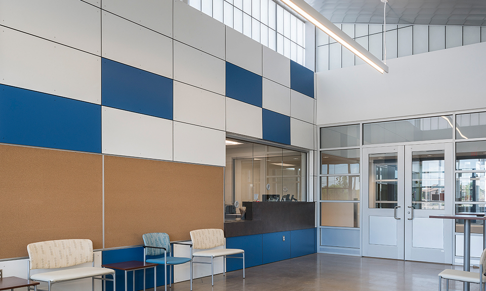 The 48,000 square-foot Parkview Early Literacy Center will provide developmentally disabled students an environment where learning and teaching will be fun, productive and fundamental for their growth. The design provides 20 classrooms which are organized in groups of four, forming a Learning Pod. Each Learning Pod’s design will have two shared Sensory Rooms, a Commons area (or break out space), a kitchenette, a Speech, Language and Pathology office, student and staff restrooms, sterilization area, and storage space. The five Learning Pods will be connected to by a perimeter concourse which provides additional break out areas. Each will have abundant natural light by means of exterior windows as well as indirect and task lighting.