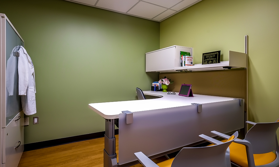 Our team worked with stakeholders in each of these three departments to develop a move management strategy in order to complete the necessary remodels and allow each of the three departments to remain open during the remodel process. The diagrams below outline our approach to, first of all, identifying an underutilized portion of the existing medical office building to serve as swing space where each of the three departments would be relocated to while their home location underwent the necessary remodel effort. We identified underutilized space within the medical office building which could serve as swing space to which each of the three departments would be relocated while their home location underwent the necessary remodel effort. Our move management plan called for the contractor to clear the space and install the data, power and phone lines required for the relocating department. Each department, in turn, relocated to the swing space provided for them then returned to their completely remodeled home space. With this move strategy, each department was able to continue operating with the least disruption.
