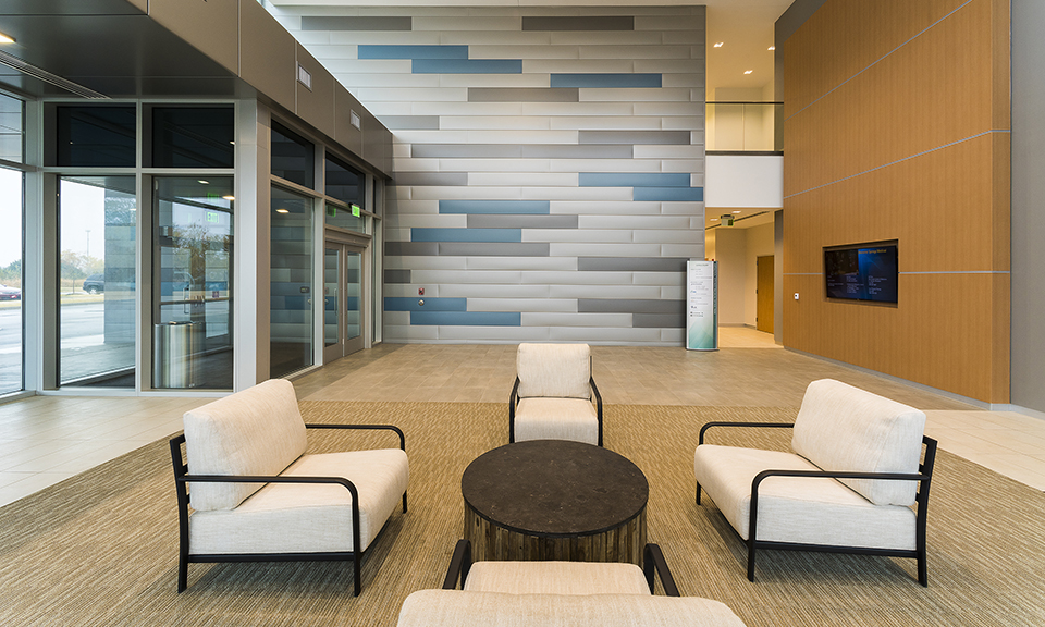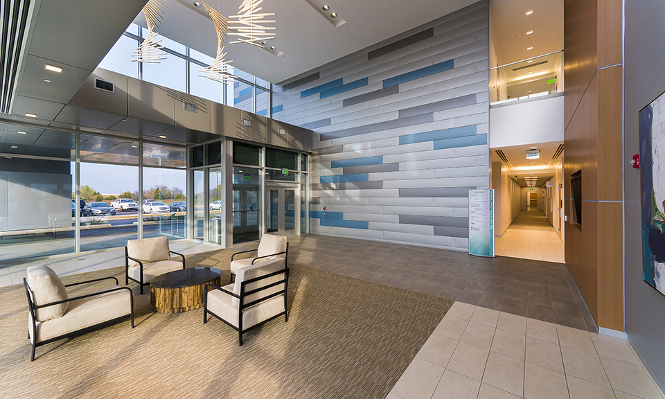 The primary building MEP systems infrastructure was installed to accommodate a variety of healthcare specialists. The second phase included the finish-out of approximately 18,000 square feet of clinical and administrative space on two levels. The spaces included a number of treatment and procedure rooms, X-ray spaces, and a laboratory. These spaces were designed to maintain the level of design quality established by the building and for patient throughput efficiency.