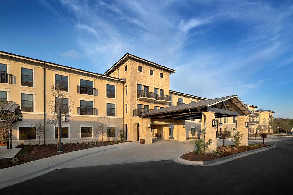 Architectural design services were provided for this three-story mid-rise senior living facility. The 104,000-SF, 141-unit facility accommodates independent and assisted living patients, with a small number of units dedicated to Alzheimer’s care. Amenities include private dining, a salon, library, health club, and pool. Located in West Lake Hills, the property is less than 15 minutes from the heart of downtown Austin, TX.